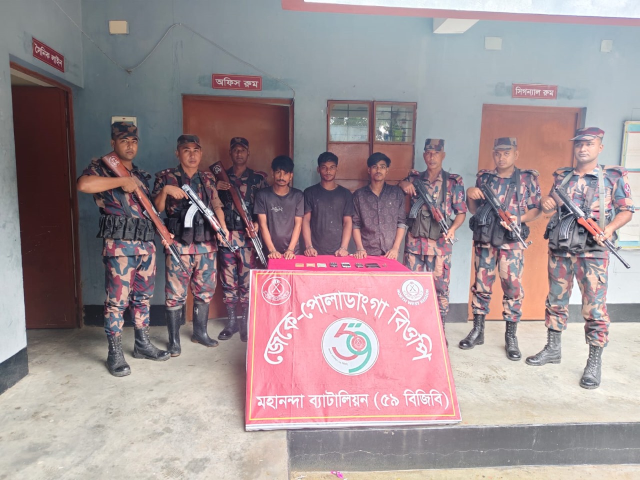 মহানন্দা ব্যাটালিয়ন (৫৯ বিজিবি)-এর অধীনস্থ জেকে পোলাডাংগা বিওপি’র দায়িত্বপূর্ণ এলাকায় অভিযানে তিন বাংলাদেশি চোরাকারবারীকে আটক করেছে বিজিবি।