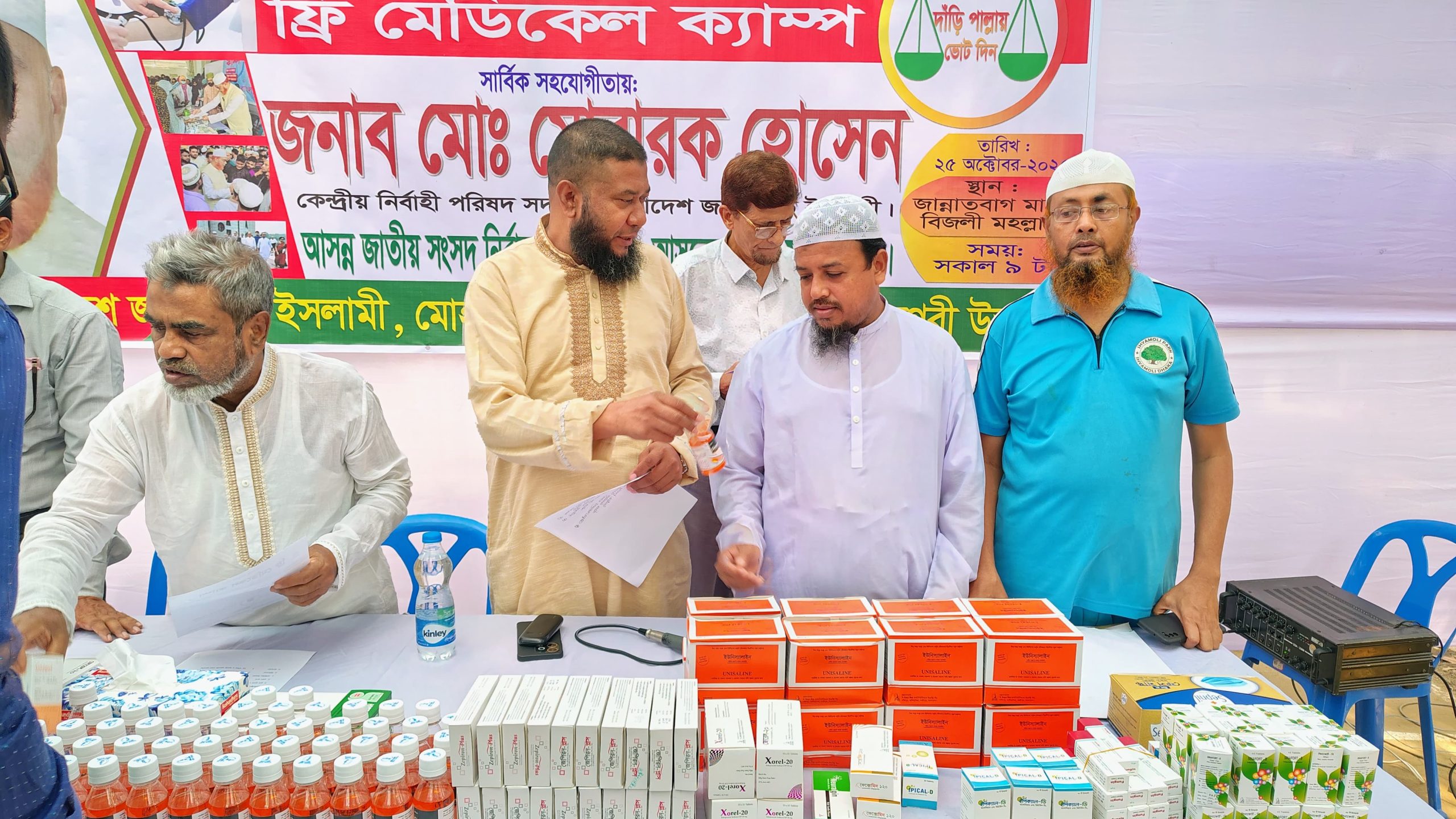 জামায়াতের ফ্রি মেডিকেল ক্যাম্পে সেবা নিলেন শতাধিক মানুষ সার্বিক সহযোগীতায় এমপি প্রার্থী মোবারক হোসাইন পরিচালনায় আইয়ূব আলী হাওলাদার