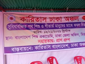 কারিতাস ঢাকা অঞ্চলের আলোকিত শিশু প্রকল্প কর্তৃক প্রান গ্রুপের সহায়তায় ২০০ জন সুবিধাবঞ্চিত পথশিশু ও শীতার্ত মানুষের মাঝে কম্বল বিতরণ করা হয়েছে।