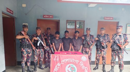 পোলাডাংগা সীমান্তে অবৈধ অনুপ্রবেশের দায়ে ৩ চোরাকারবারী আটক মাহিদুল ইসলাম ফরহাদ চাঁপাইনবাবগঞ্জ জেলা প্রতিনিধি মহানন্দা ব্যাটালিয়ন (৫৯ বিজিবি)-এর অধীনস্থ জেকে পোলাডাংগা বিওপি’র দায়িত্বপূর্ণ এলাকায় অভিযানে তিন বাংলাদেশি চোরাকারবারীকে আটক করেছে…